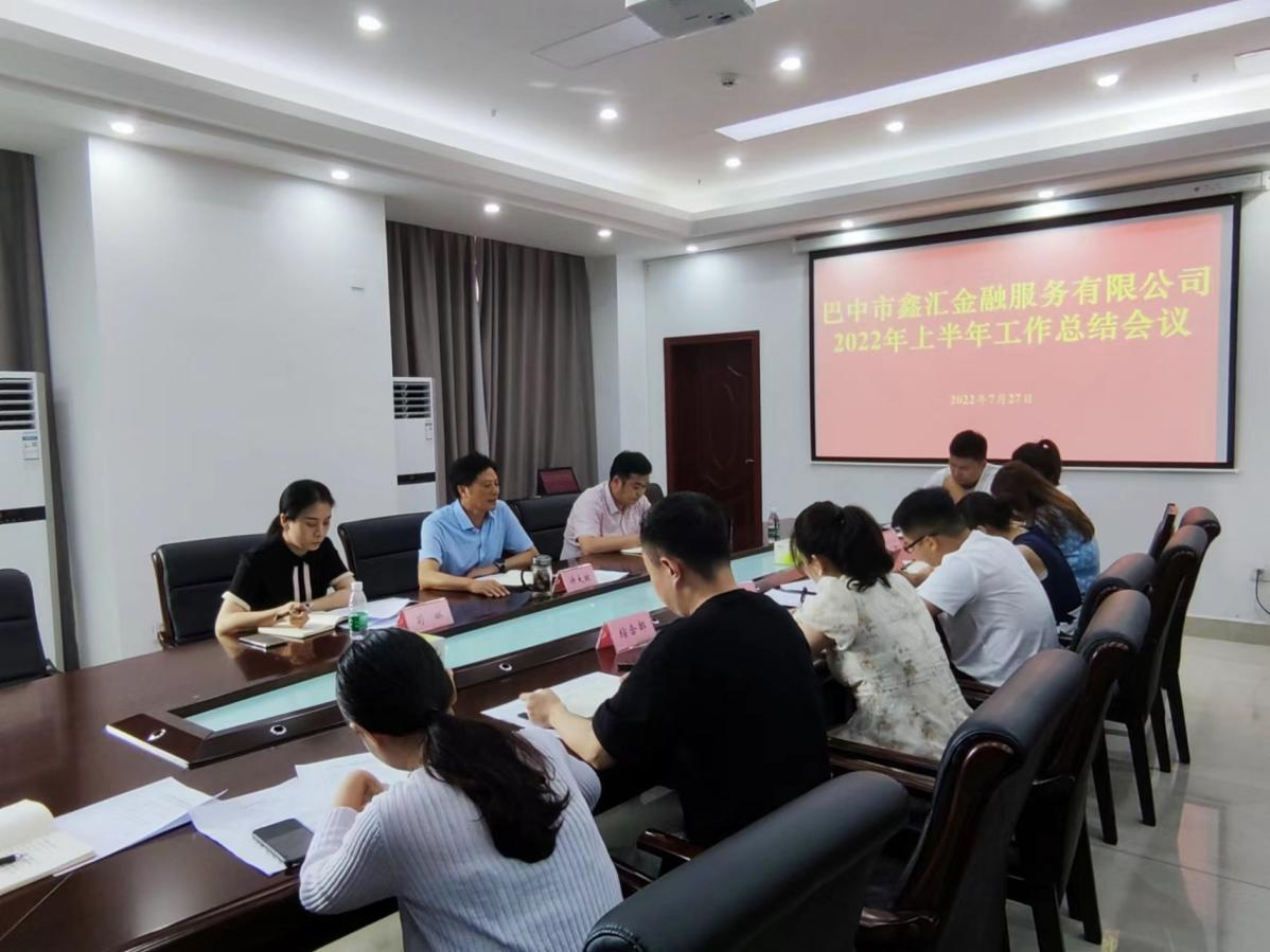 7月27日下午,巴中市鑫匯金融服務(wù)有限公司召開2022年半年工作總結(jié)會,總結(jié)上半年工作,安排部署下半年重點工作。公司黨總支書記、執(zhí)行董事、總經(jīng)理許大政主持會議并講話,全體職工參加會議。