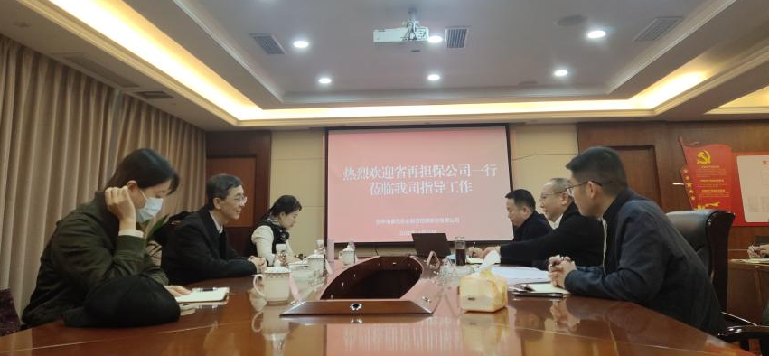 11月21日,四川省信用再擔(dān)保有限公司副總裁廖繼偉一行到巴中市秦巴農(nóng)業(yè)融資擔(dān)保股份有限公司就長(zhǎng)期分險(xiǎn)合作事項(xiàng)開(kāi)展指導(dǎo)交流。